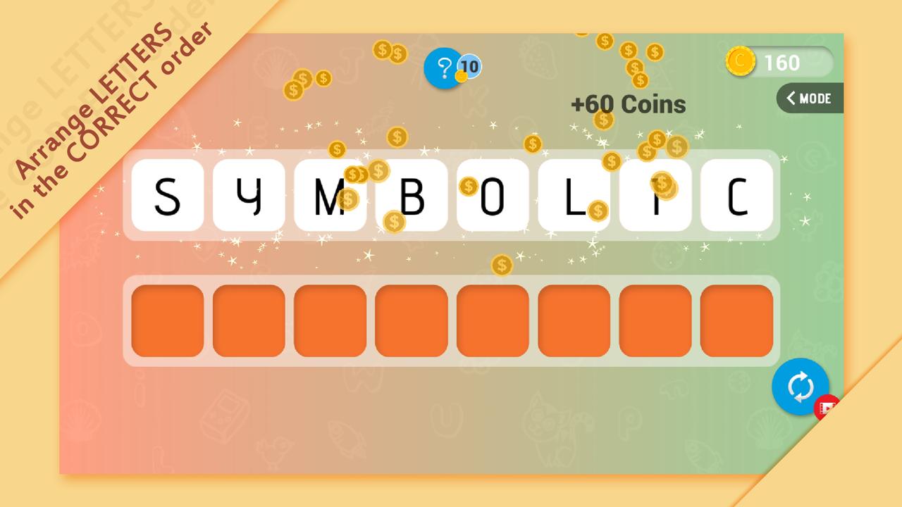 - 4 Modes de jeu différents - Puzzle de mots sans fin, devineuse mot par image, mot manquant et glissement de mots.
